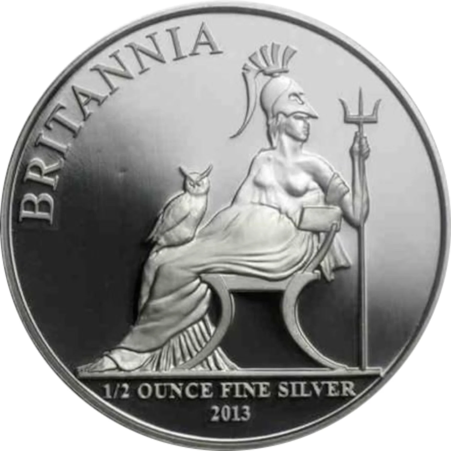 Britannia seated with trident and owl, legend and date below.