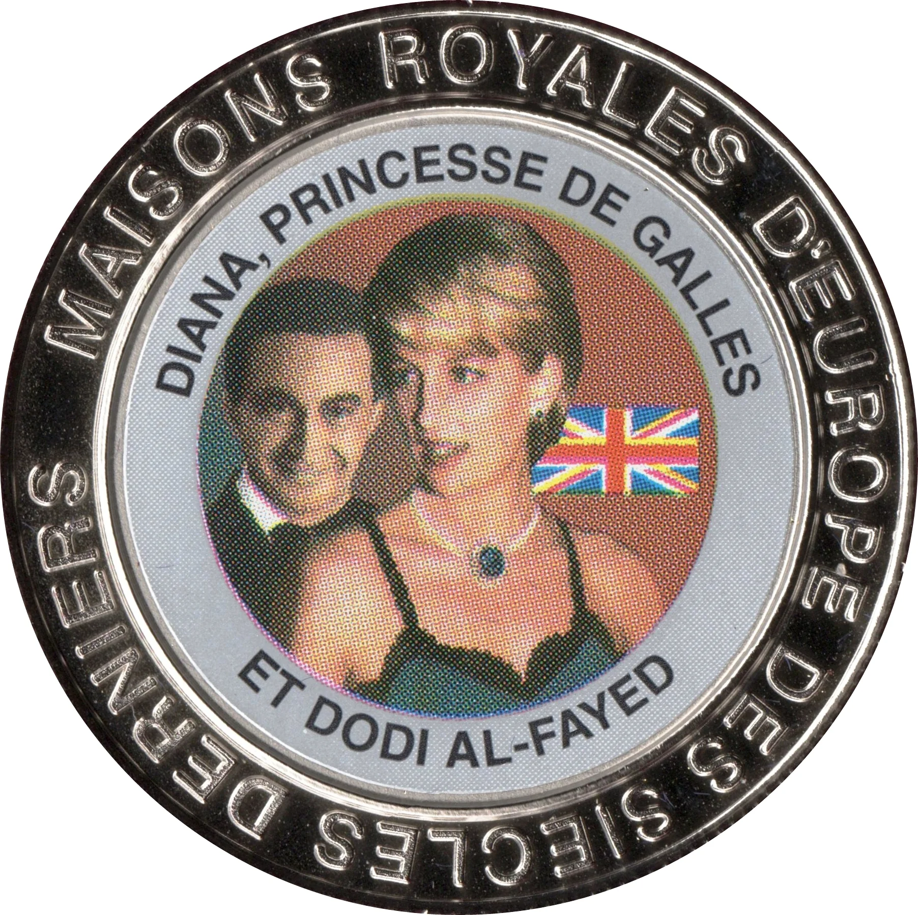 Portrait of Princess Diana and Dodi Al-Fayed inside a circle.