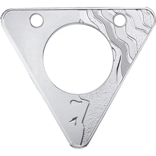 Stylized face with a central large hole and two small upper corner holes.
