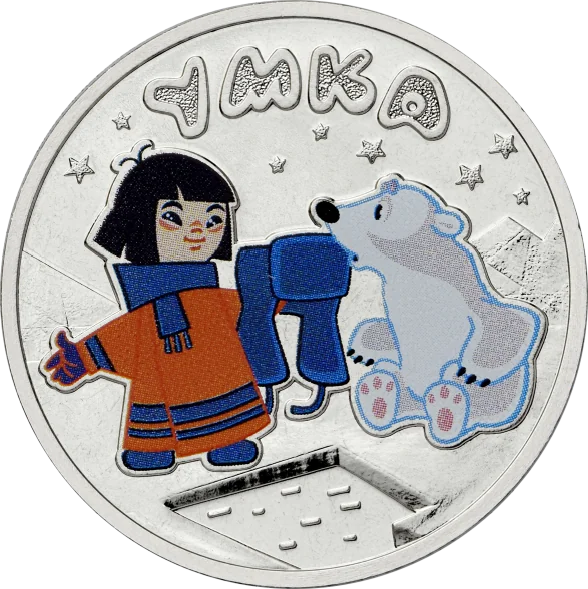 Central: A color relief of "Umka" characters against ice and stars.
