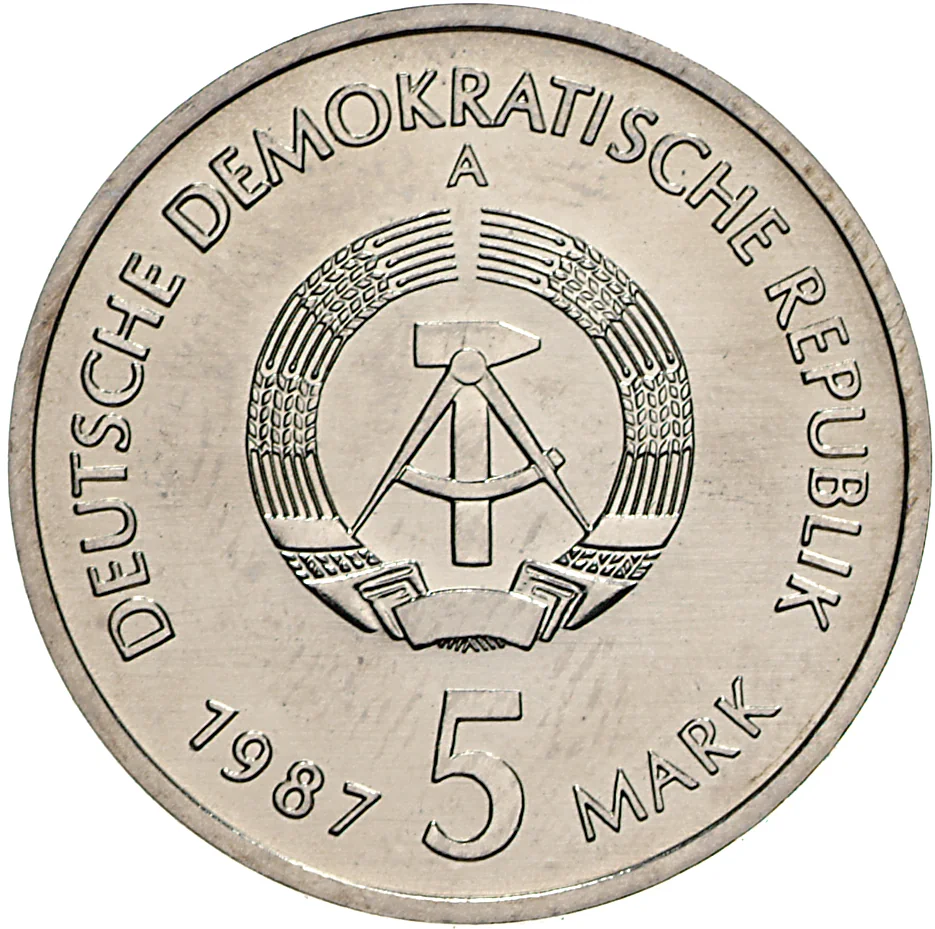 GDR emblem with mintmark above, denomination and date below.