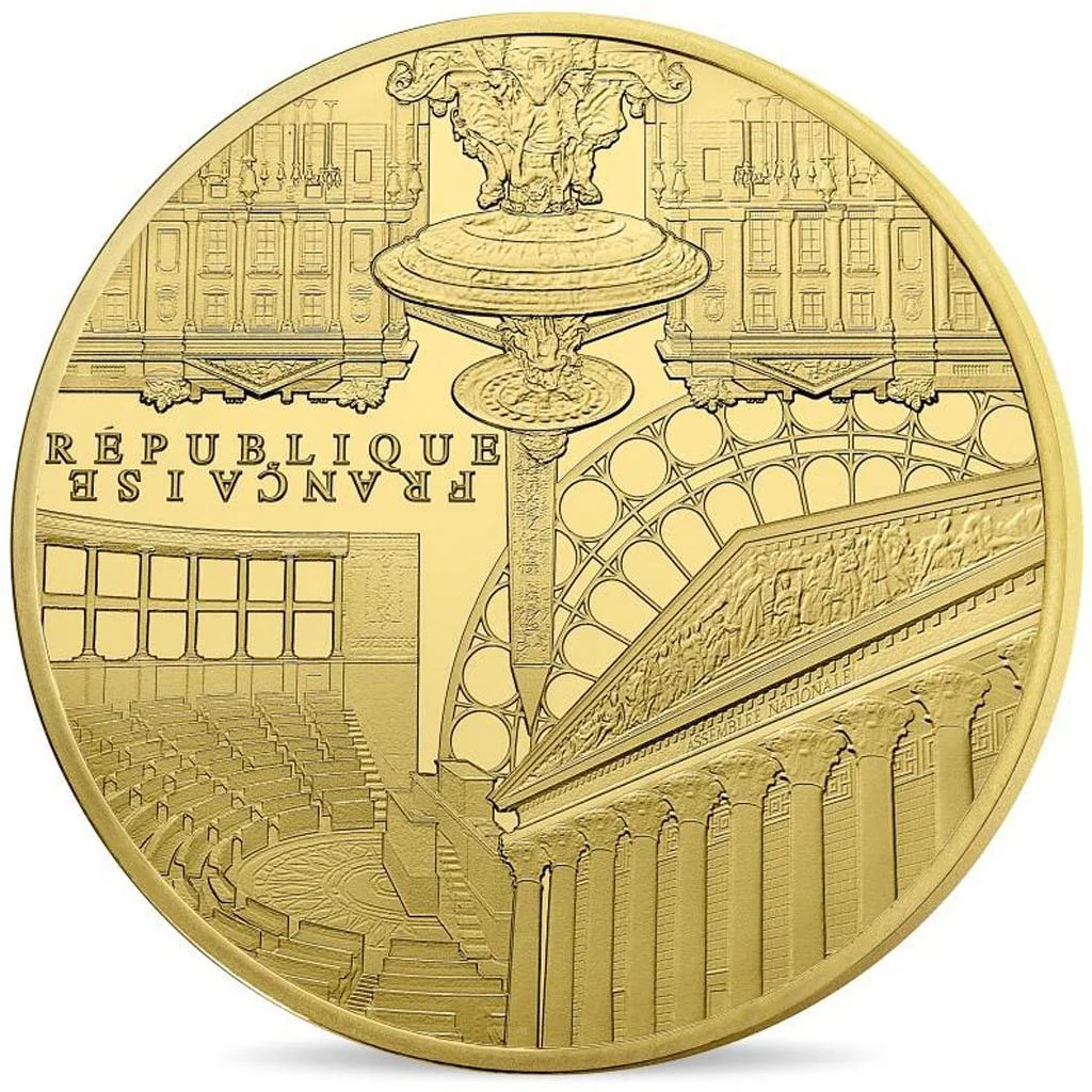 The National Assembly represents the French people, legislates, and oversees the government. Its hemicycle features a rhodium-highlighted glass roof. Nearby, the Place de la Concorde's fountain and obelisk are adorned with gold on silver.