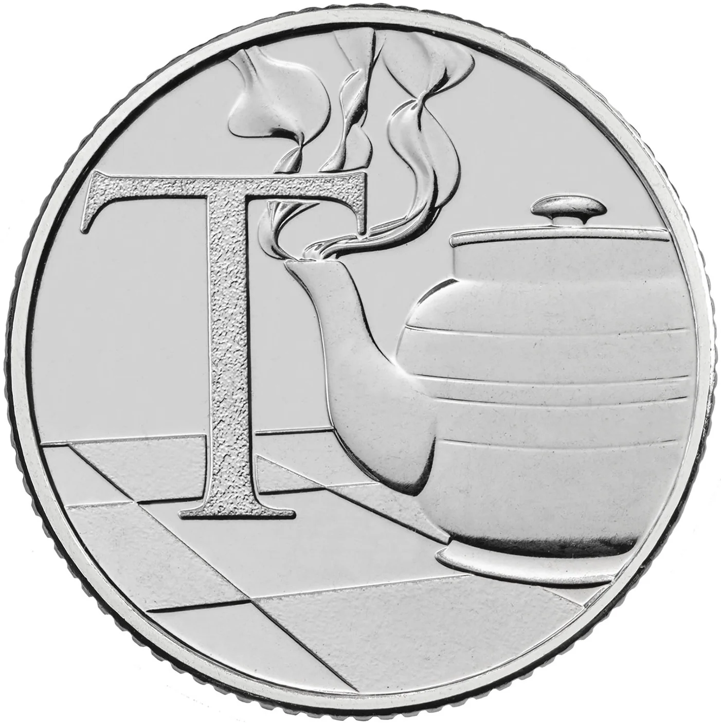 A teapot beside the letter 'T'.