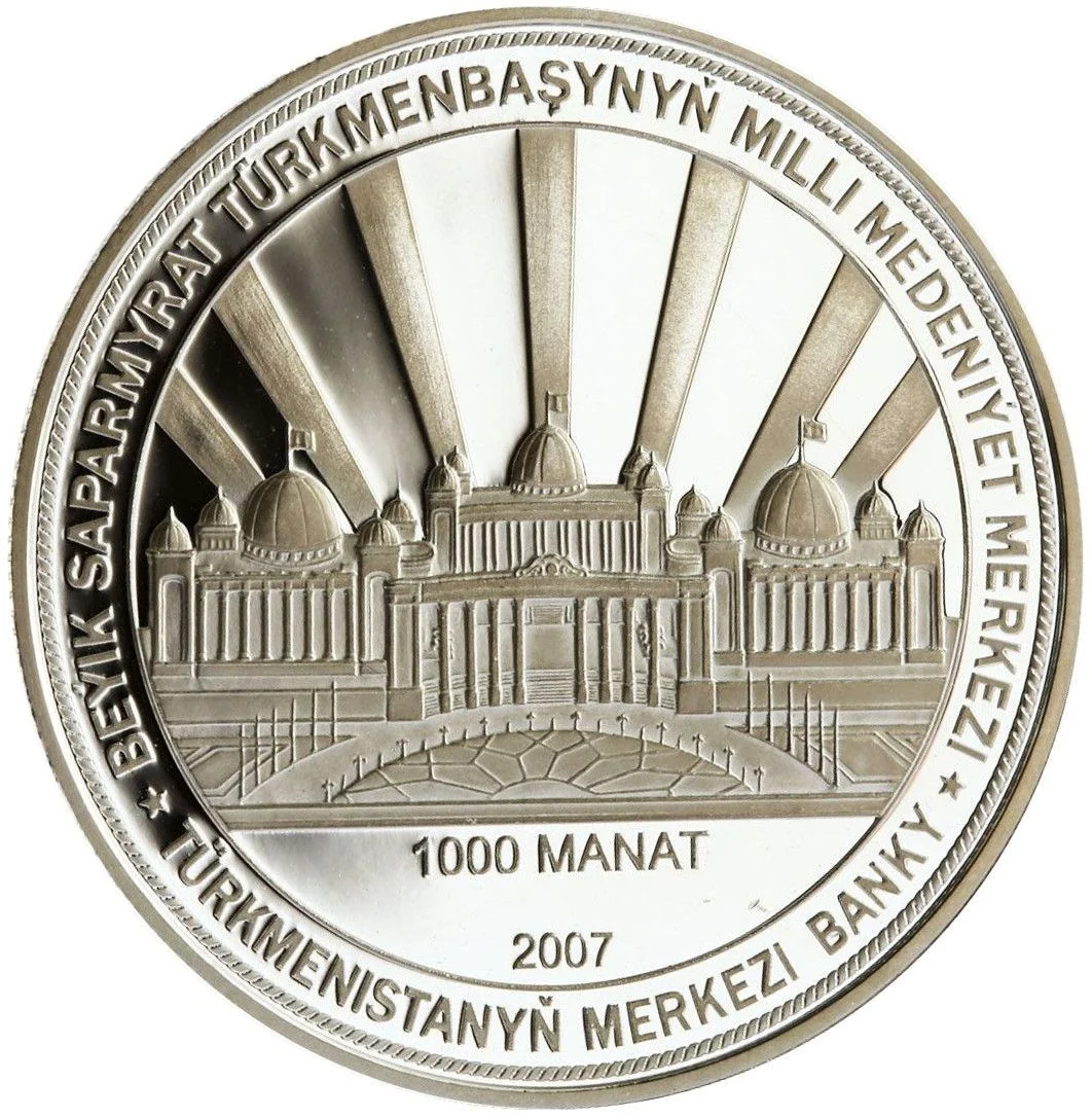 Inscription: BEÝIK SAPARMYRAT TÜRKMENBAŞYNYŇ MILLI MEDENIÝET MERKEZI