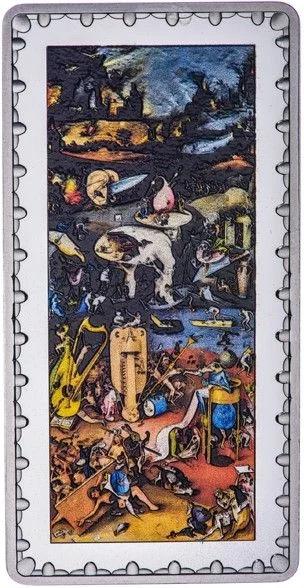 Color reproduction of the left "Hell" panel from Hieronymus Bosch's 1500-1505 triptych, housed in the Prado Museum, Madrid.