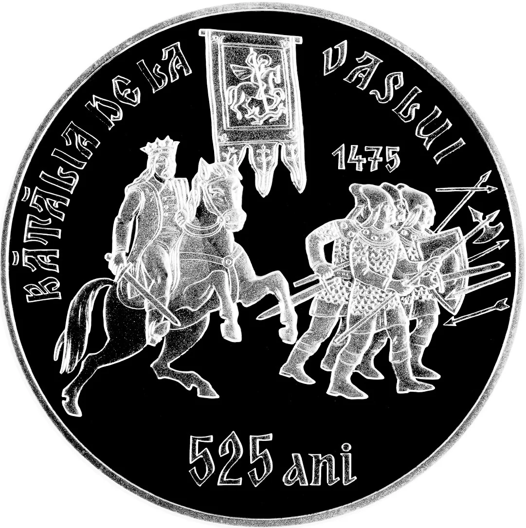 Description: - Center: the 1475 Battle of Vaslui with Ștefan cel Mare on horseback.
