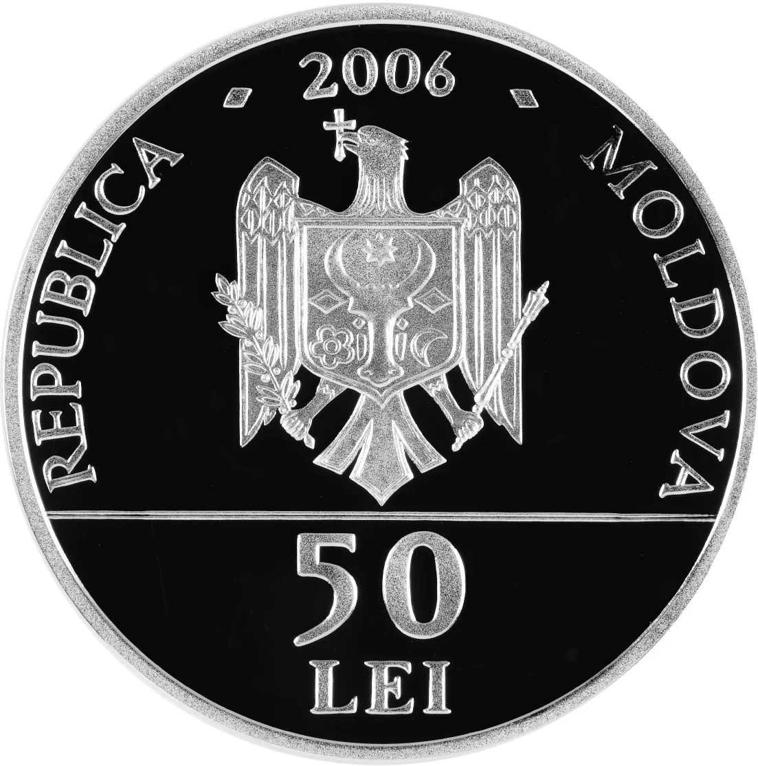 - Circumference: "REPUBLICA MOLDOVA" in block letters.