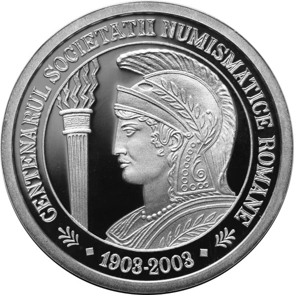 Description: Romania's coat of arms, the inscription "ROMANIA", and the year "2003". The Romanian numismatic symbols—the Horn of Plenty with flowing coins—are shown, with the circular engraving of the face value "500 LEI" below.