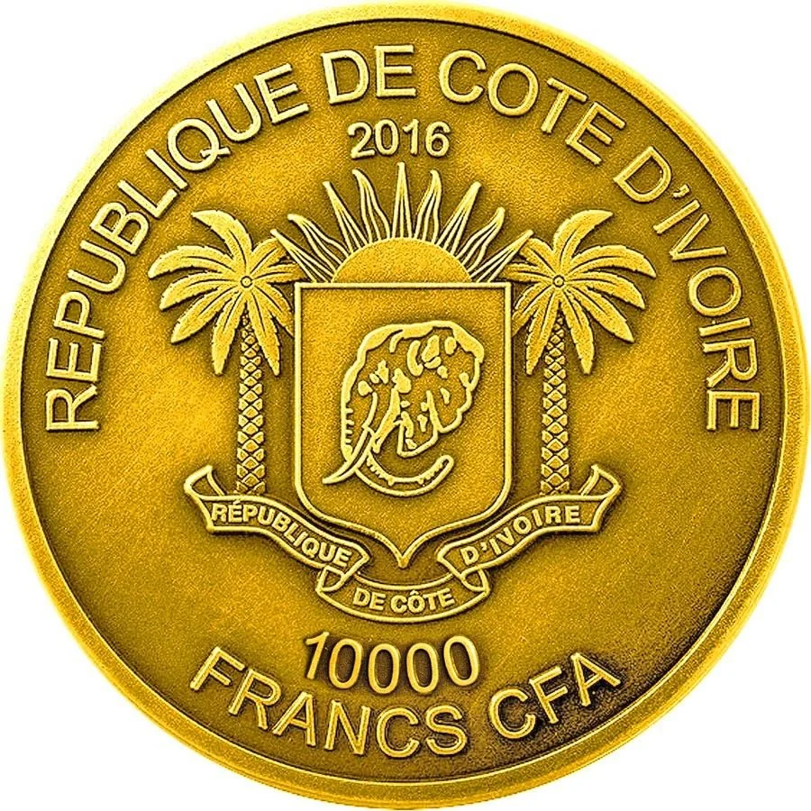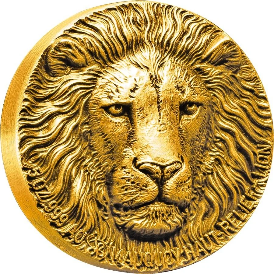 Five ounces, 999 gold, Mauquoy, high-relief lion.