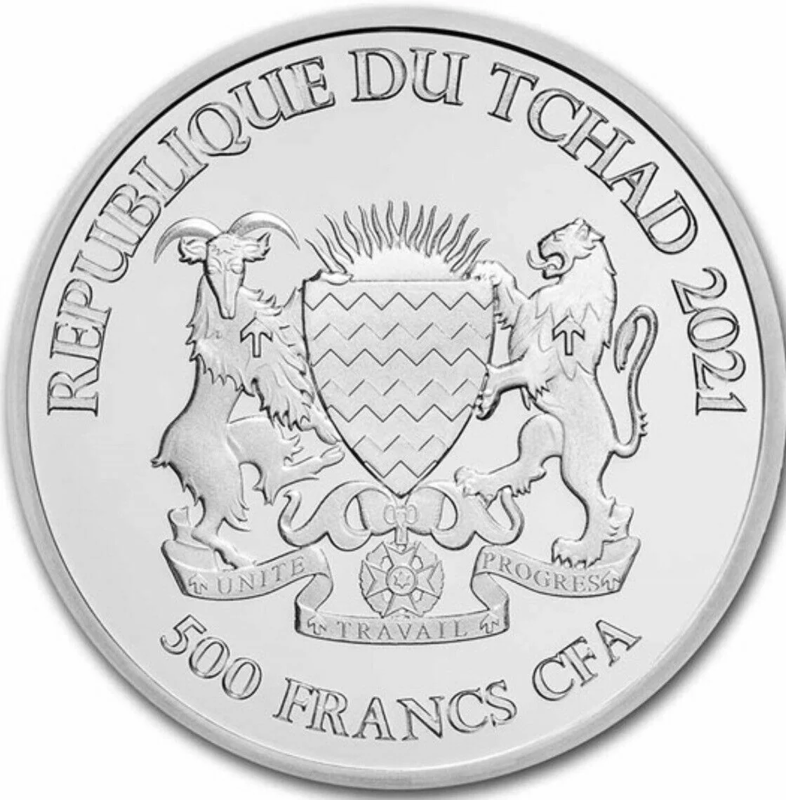 Chad's coat of arms with inscription, date above, denomination below.