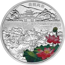 Breeze-ruffled Lotus at Quyuan Garden, featuring a lotus image (partly colored), its Chinese name, and face value.