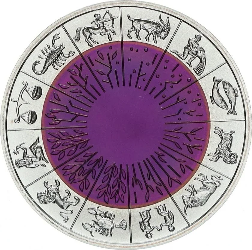 The reverse depicts the Zodiac encircling evolutionary stages of plant life, symbolizing the changing seasons.