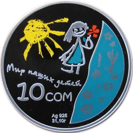 National Coat of Arms, six flowers below, multicolored logo at bottom, date on right.