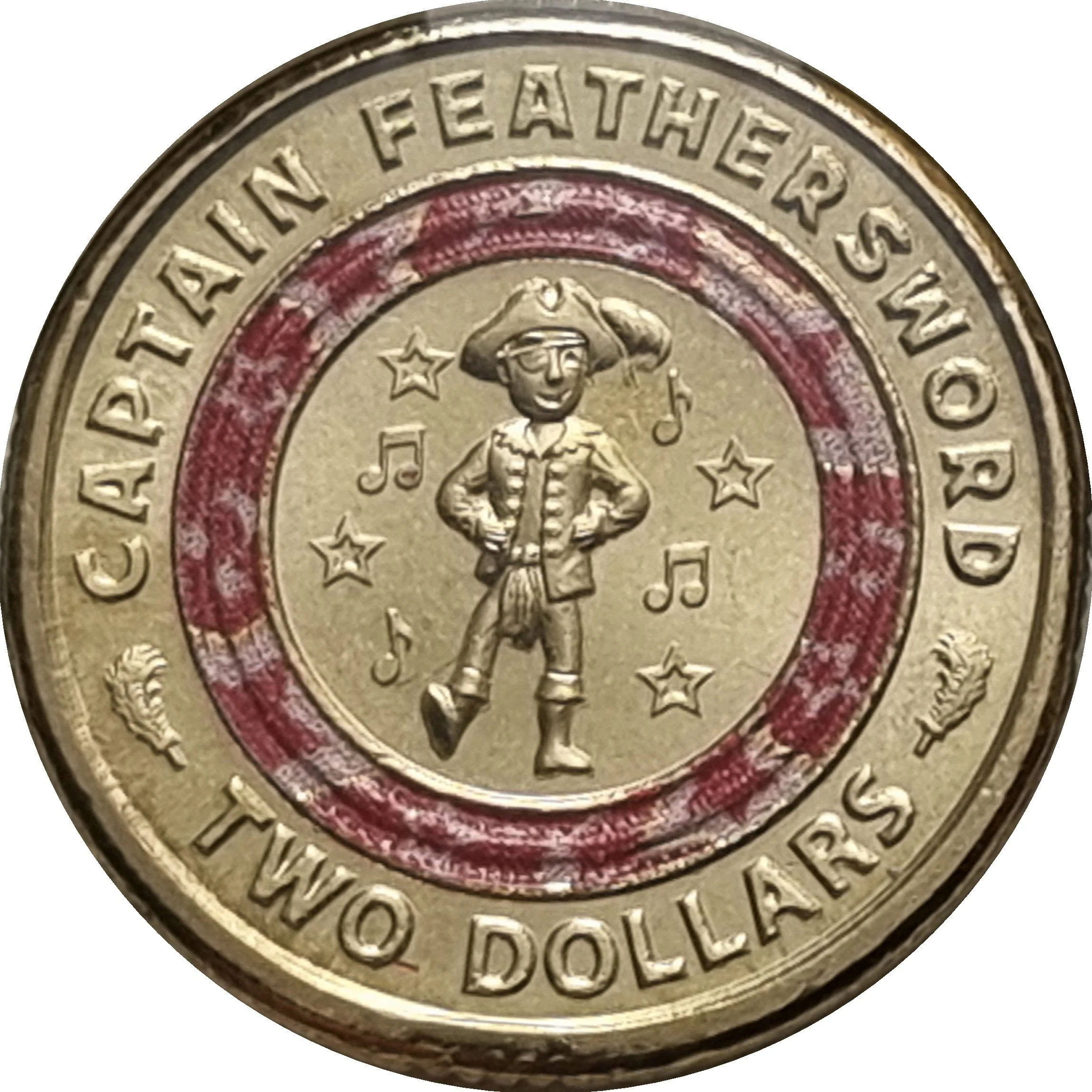 Captain Feathersword in a red ring, encircled by notes and stars.