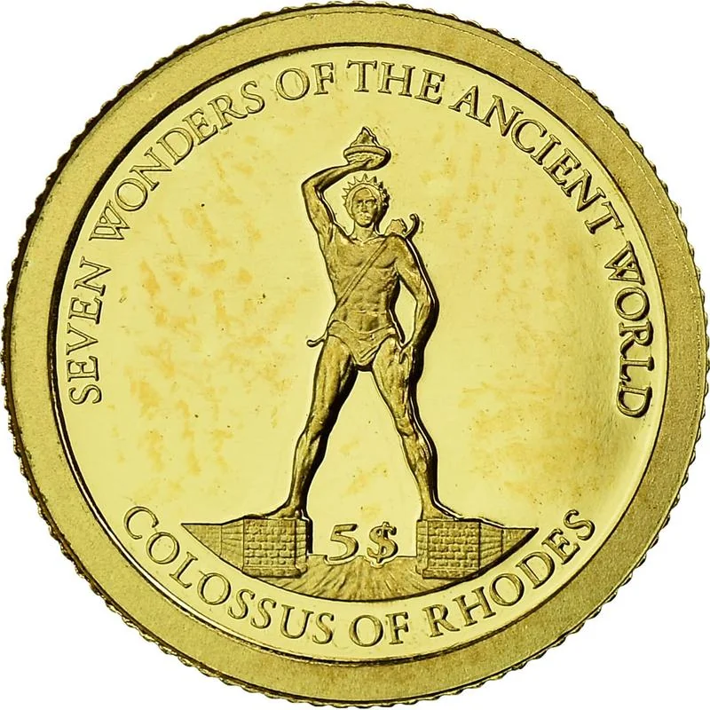 A massive bronze statue of the sun god Helios that stood at the harbor of Rhodes.
