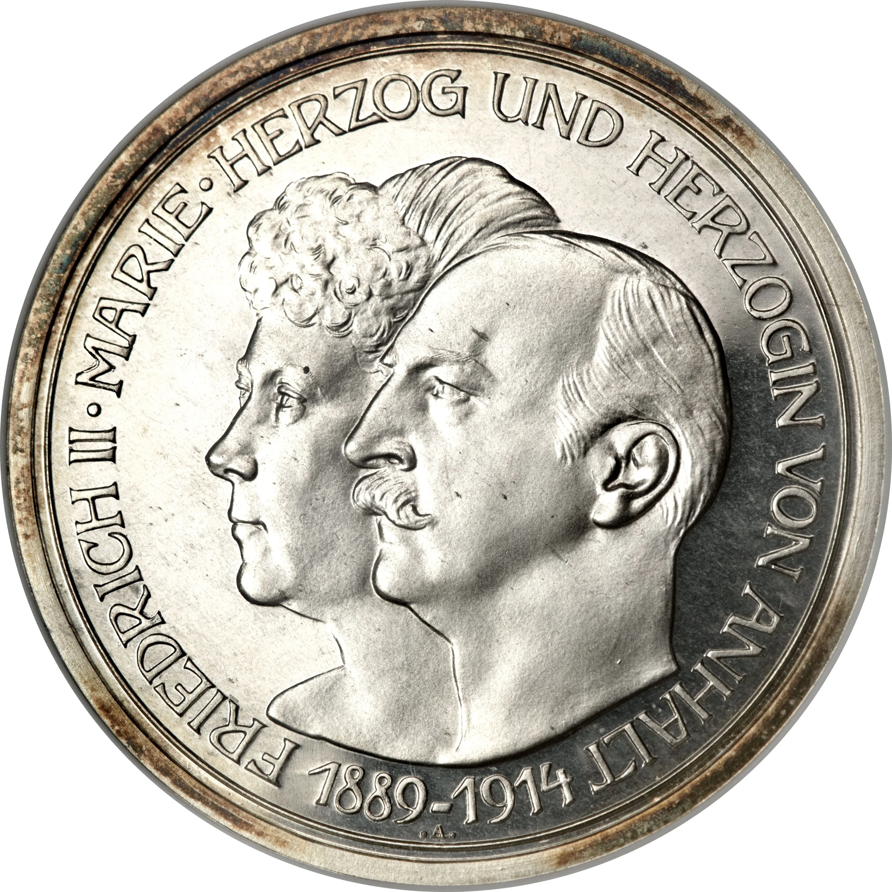 Scheidemünzen (small change coins). While the Reichsmark was paramount, individual states were permitted to mint low-value, token coins in limited quantities for local use. In Anhalt-Dessau, this included coins in denominations of pfennigs and marks, which bore the insignia of the duchy and the portrait of Duke Friedrich II. These were not sovereign currencies but subsidiary to the Goldmark, accepted everywhere within the Empire and their value guaranteed by the central Reich government.