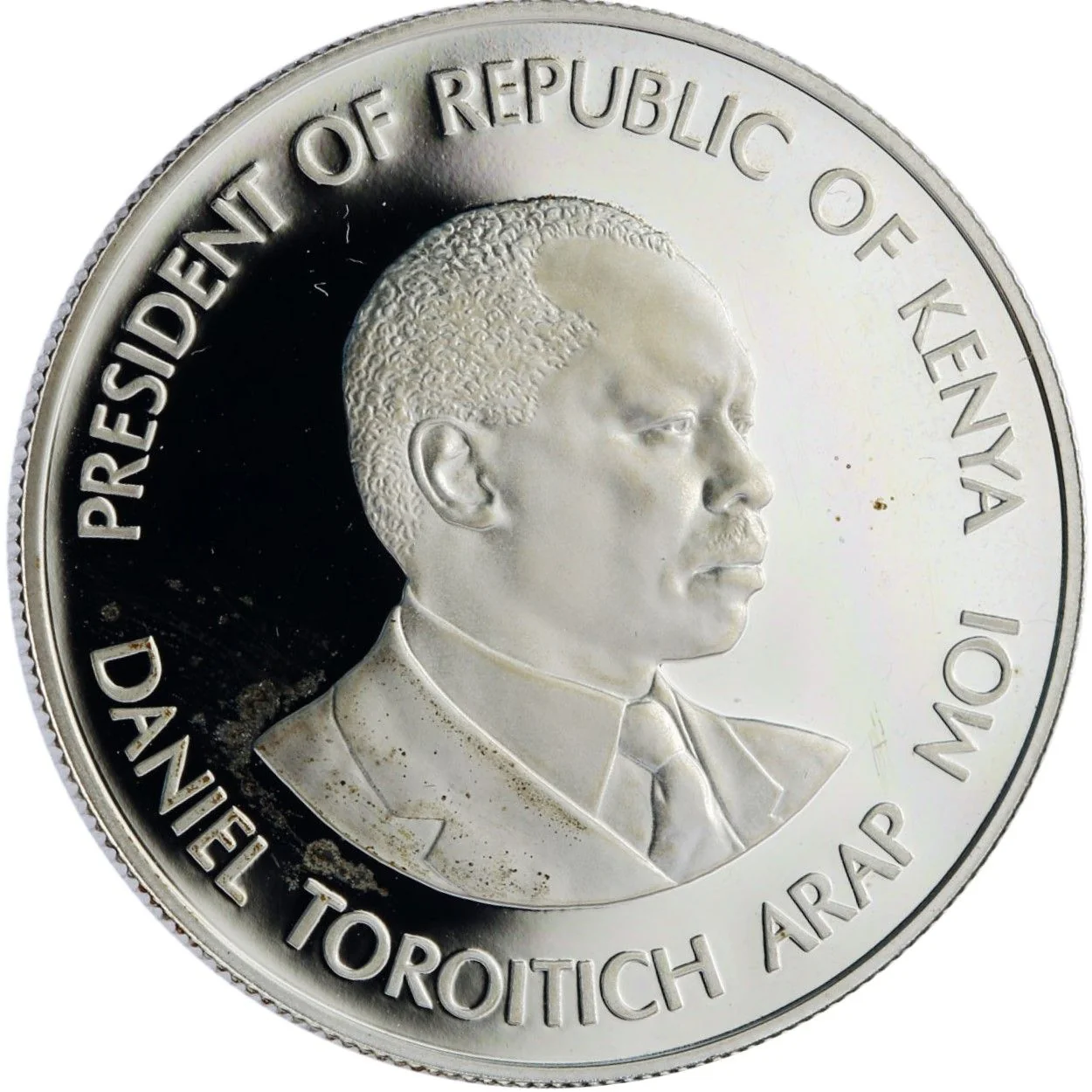 Bust of Daniel arap Moi facing right.