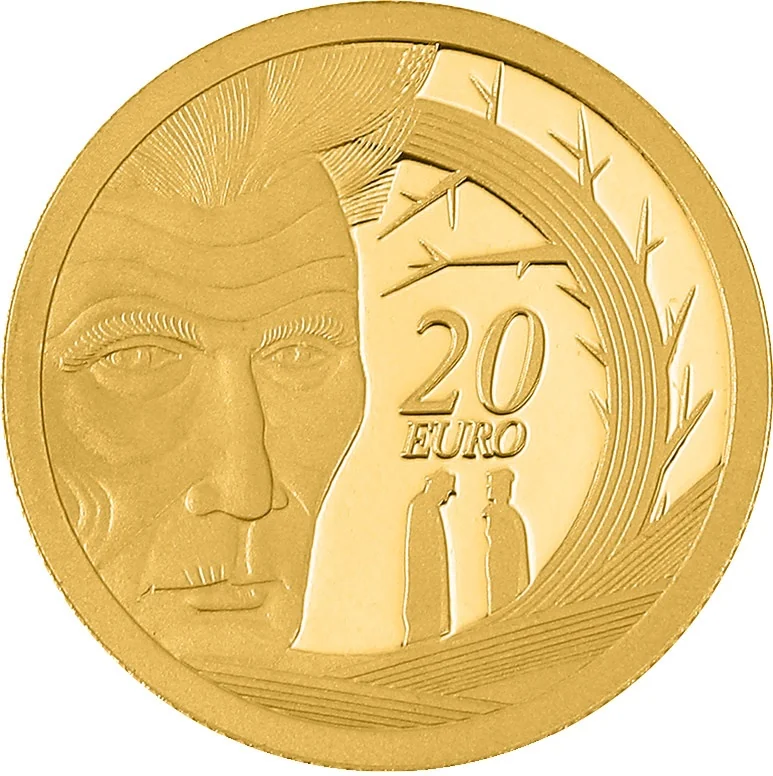 A Celtic harp inscribed "Samuel Beckett 1906 - 1989" and "éire 2006" on the scroll.