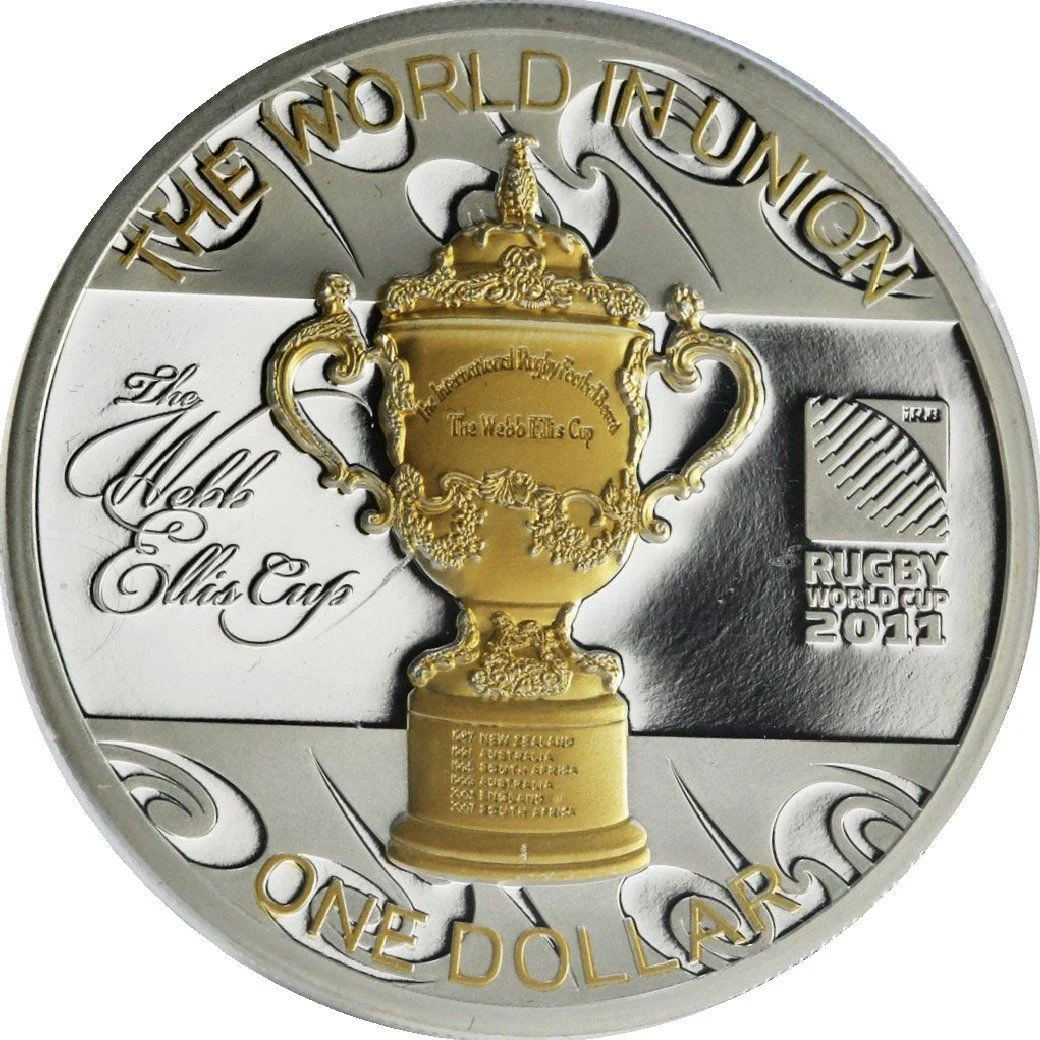 The Webb Ellis Cup, selectively gold plated with high-relief detail and the 2011 World Cup logo.