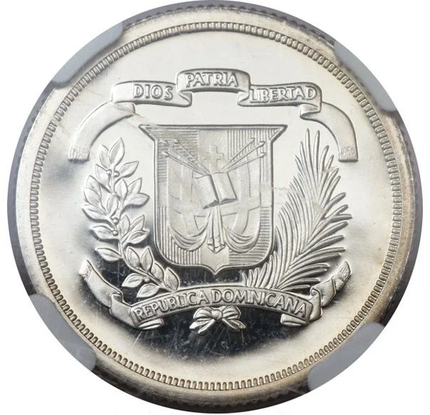 Denomination, weight, year, and a portrait of Juan Pablo Duarte, a Dominican Republic founding father.