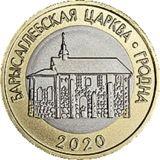 Central image: Borisoglebsk Church in Grodno. Circular inscriptions: top - BARYSAGLEBSKAYA TSARKVA. GRODNA; bottom - 2020.