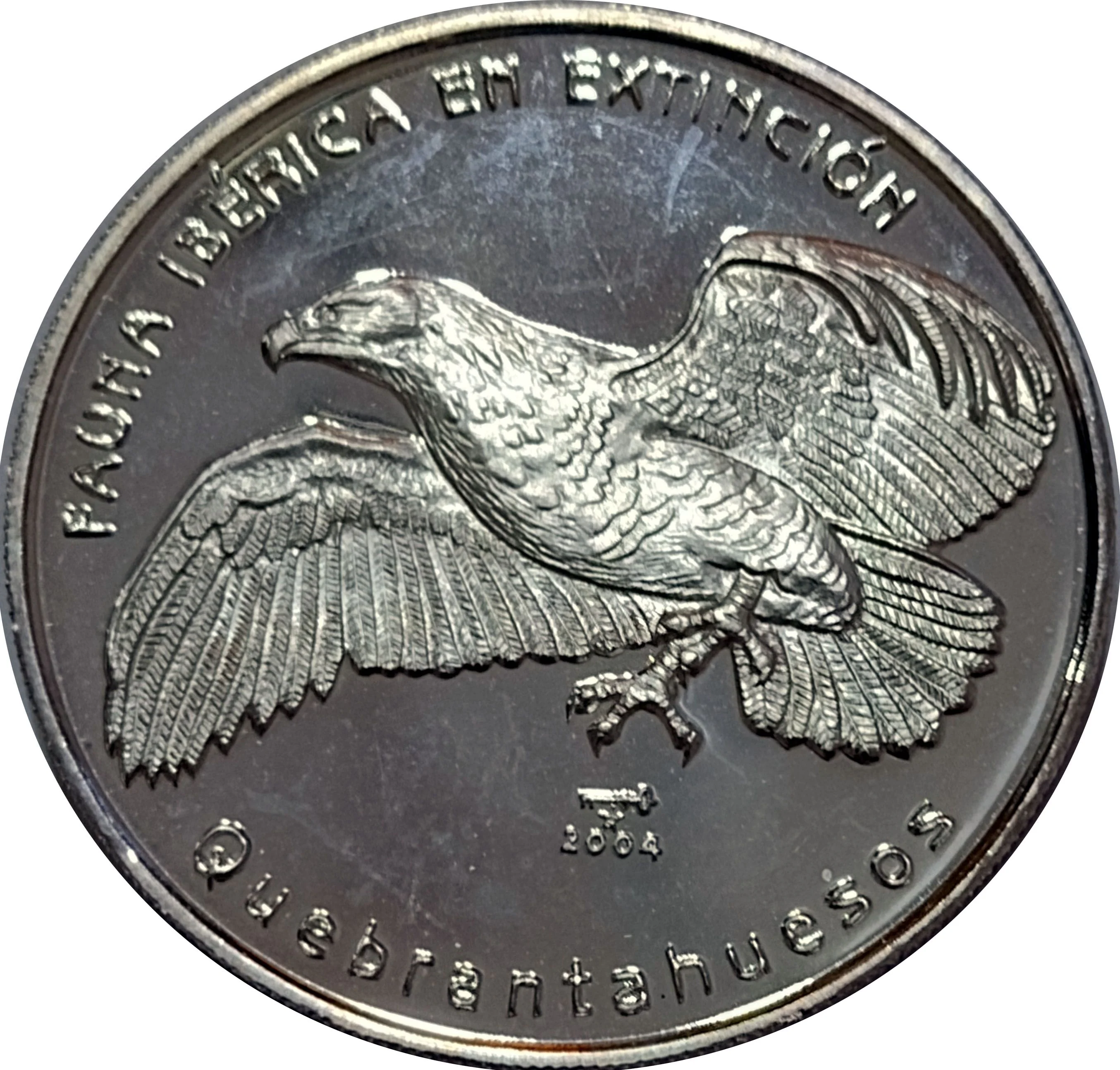 Bearded vulture in flight, mintmark and year below.