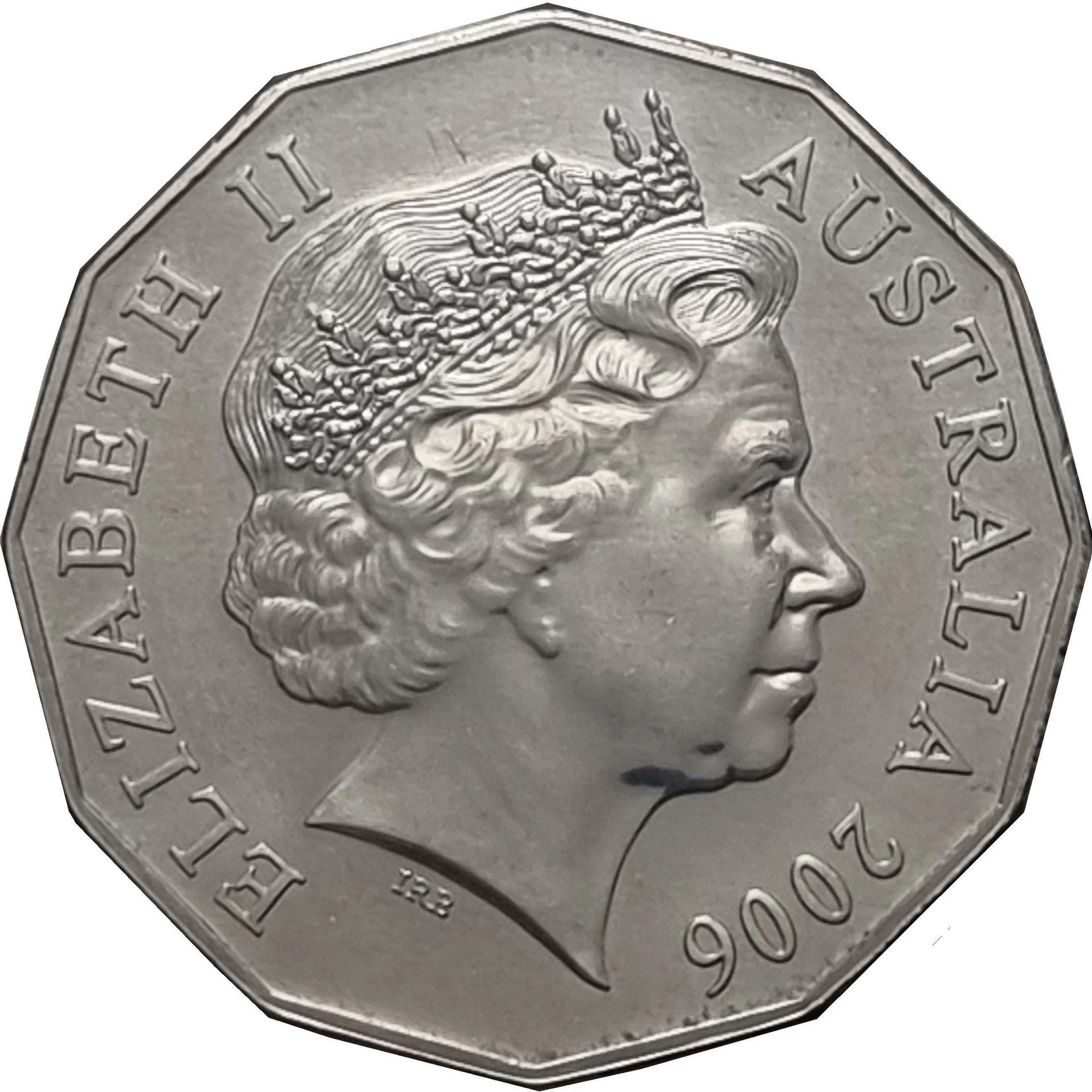 Australia's image, enlarged from a world illustration ringed by St. Edward's crowns and topped with a small 50.