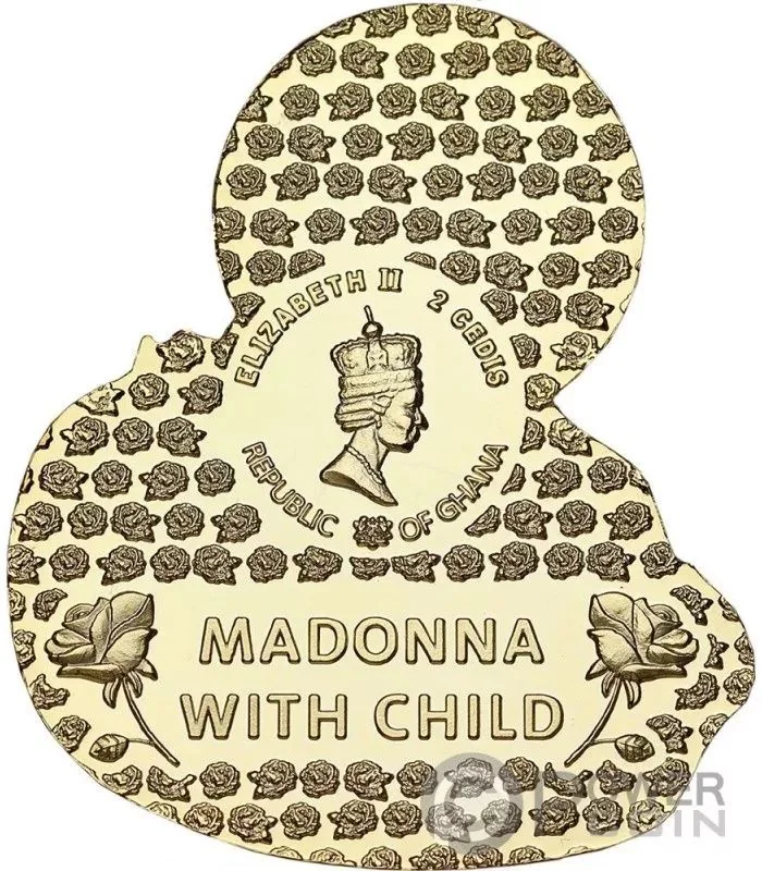 Small right-facing Queen Elizabeth II effigy encircled by a repeating rose pattern.