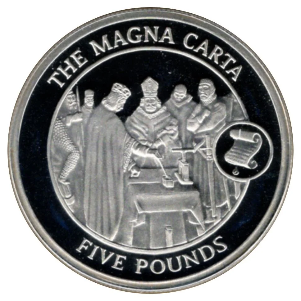 King John signing the Magna Carta at Runnymede, with an inset of the manuscript.