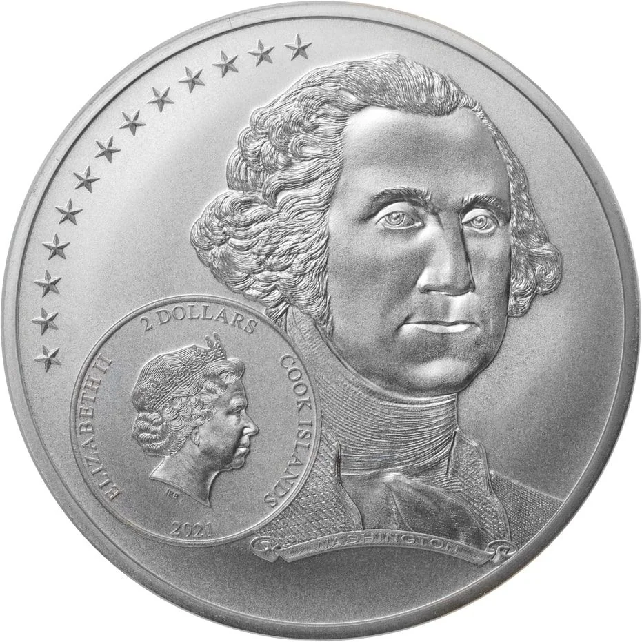 Queen Elizabeth II effigy with George Washington portrait.