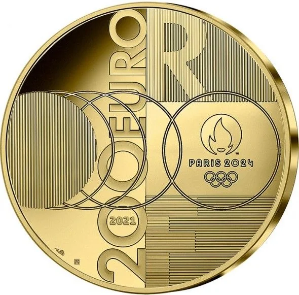 Japanese and French flags flanking "200 EURO," with Olympic rings and the Paris 2024 logo.