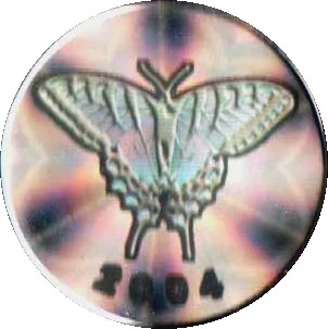 Tiger swallowtail in flight, date below.