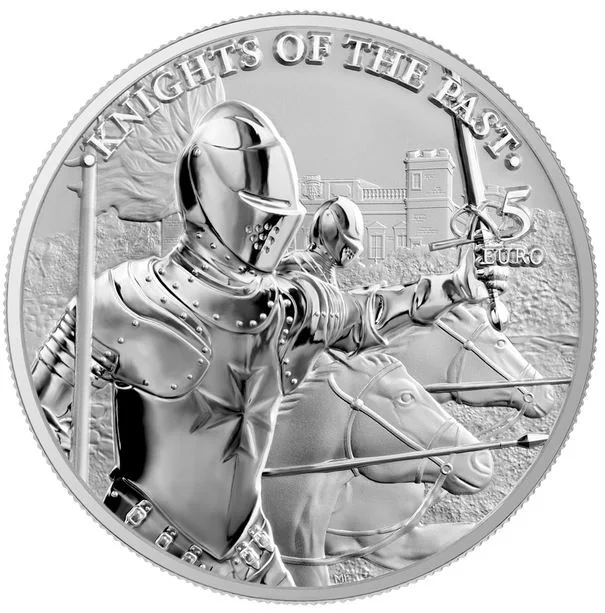 An armored knight bearing the Central Bank of Malta's shield.