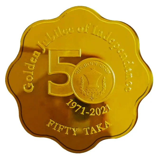 Engraved with Sheikh Mujibur Rahman's portrait.