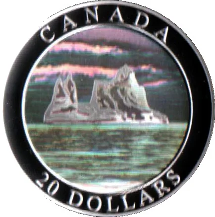 Holographic portrait of icebergs, depicting ice islands calved from the polar cap and carried to Newfoundland by ocean currents.