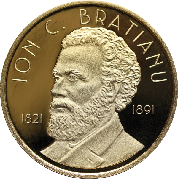 Reverse: portrait of Ion C. Brătianu, arched inscription "ION C. BRATIANU", and years "1821" and "1891".