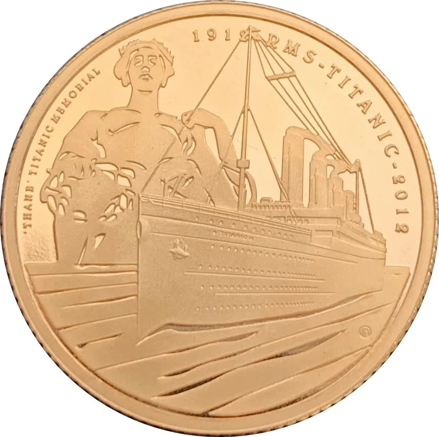 The Titanic departing Southampton, with Belfast's 'Thane' memorial statue in silhouette behind.