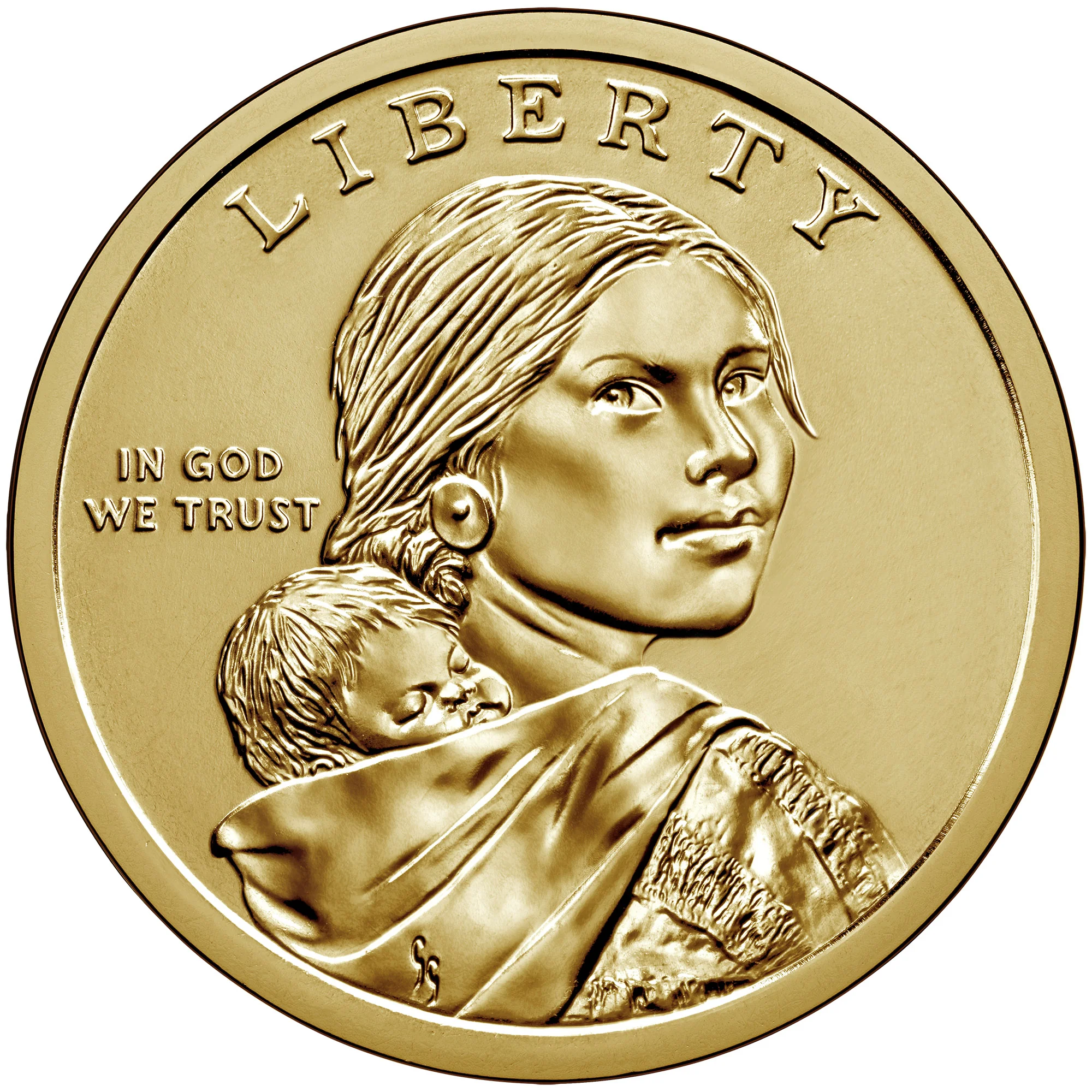 Sacagawea facing right, carrying her infant son Jean Baptiste.