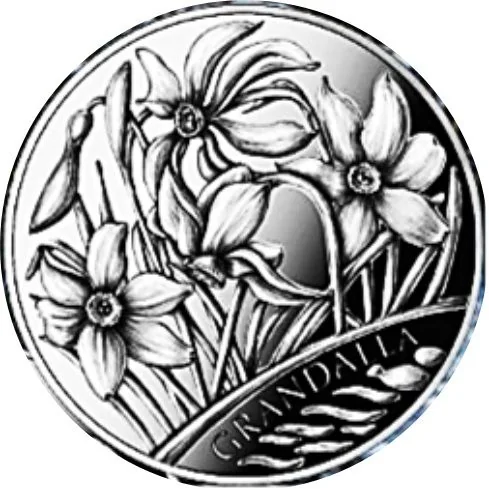 Stylized fusion of the Margineda Bridge profile and a Narcisus Poeticus flower.