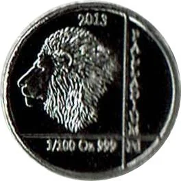 Lion head left, encircled by date, metal name, weight, fineness, and chemical symbol.