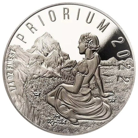 A girl gazing at the Swiss Alps, an homage to the 125th-anniversary "Vreneli" gold coin.