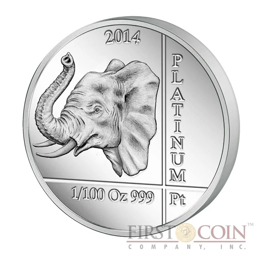 Elephant head left, with date, Latin name, weight, fineness, and chemical symbol.