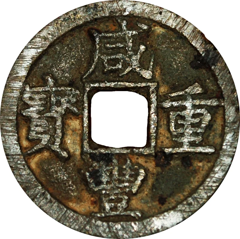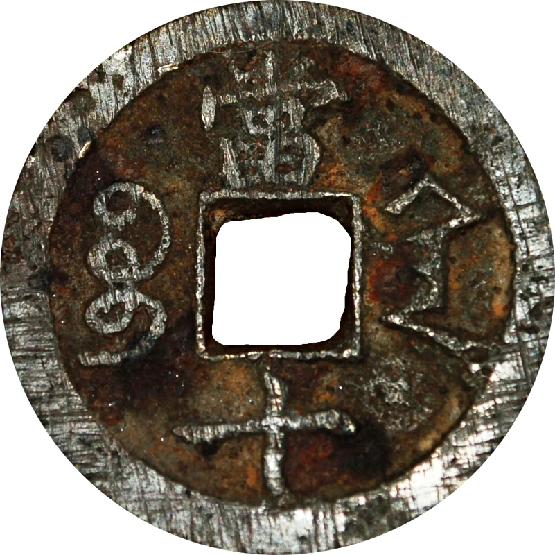 Two Manchu words flank a central hole, each with a Chinese character above and below.