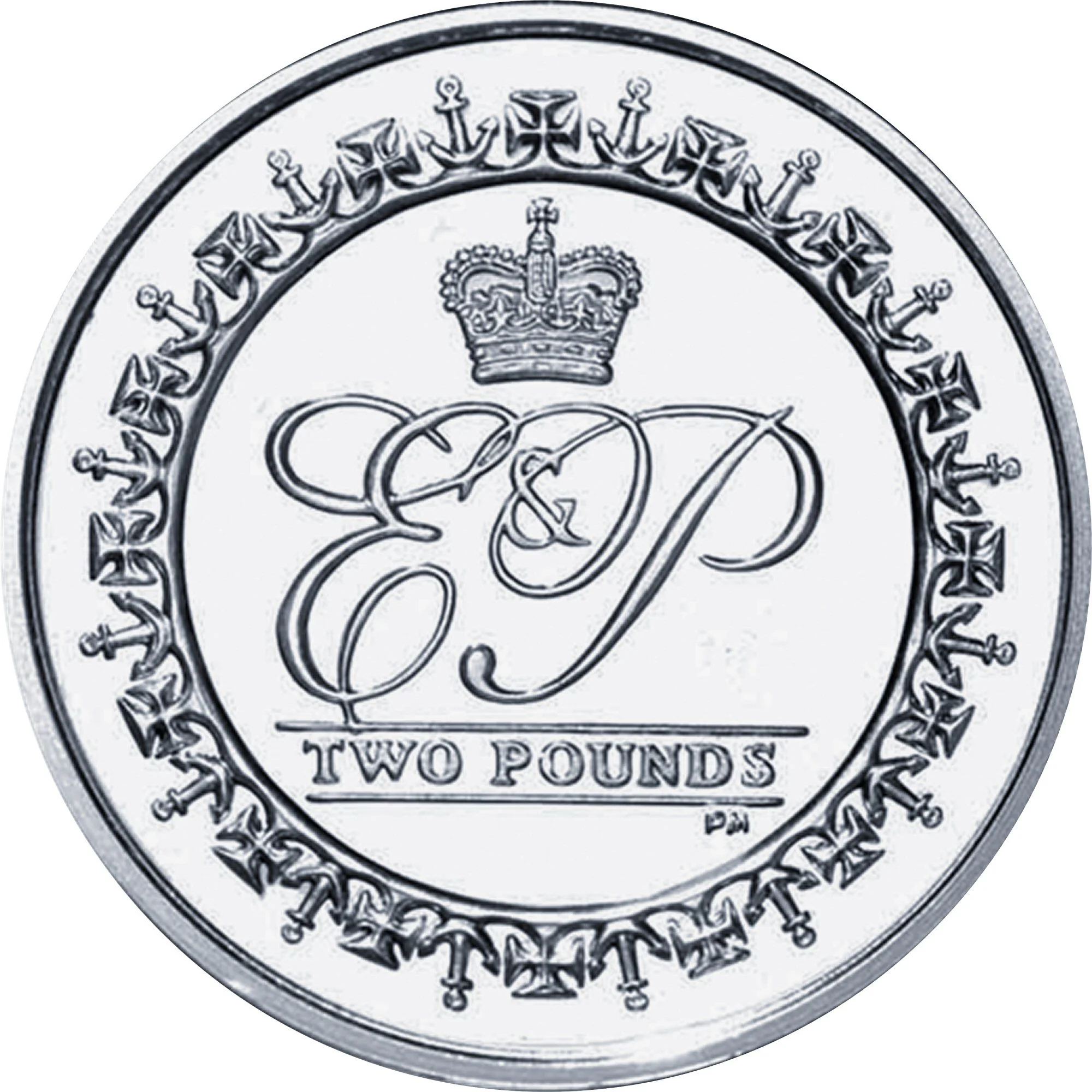 A coin marking the 85th and 90th birthdays of Queen Elizabeth II and Prince Philip, featuring their initials E&P.