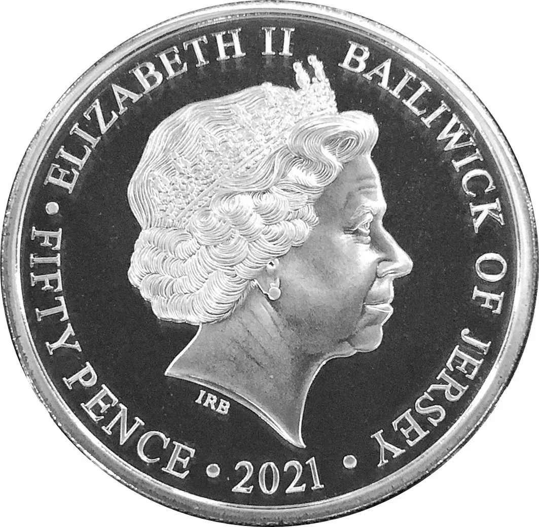 Inscription: ELIZABETH II BAILIWICK OF JERSEY 2021 FIFTY PENCE