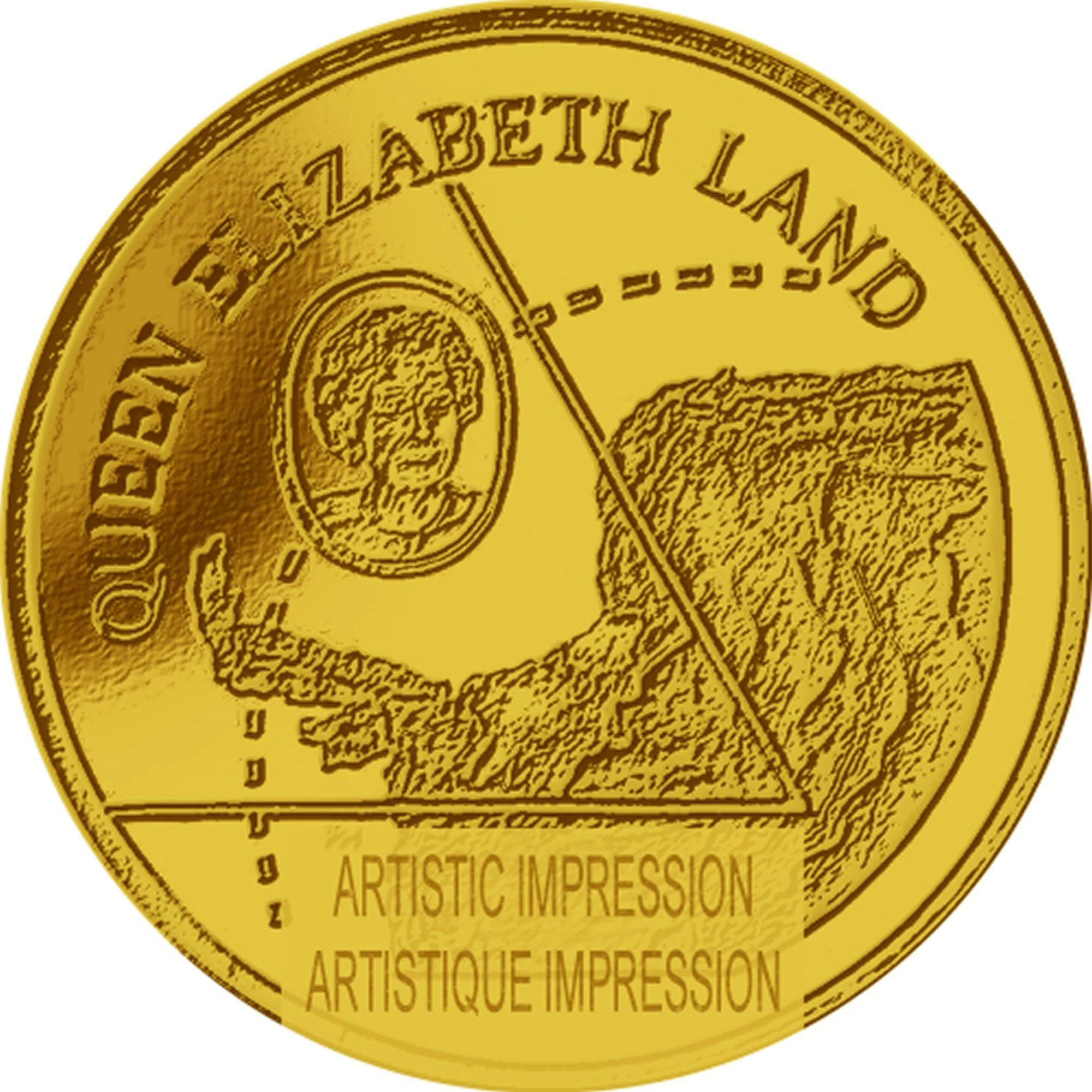 Queen Elizabeth Land Antarctic map. "V" border with Queen Elizabeth II cameo. Legend above, value below.