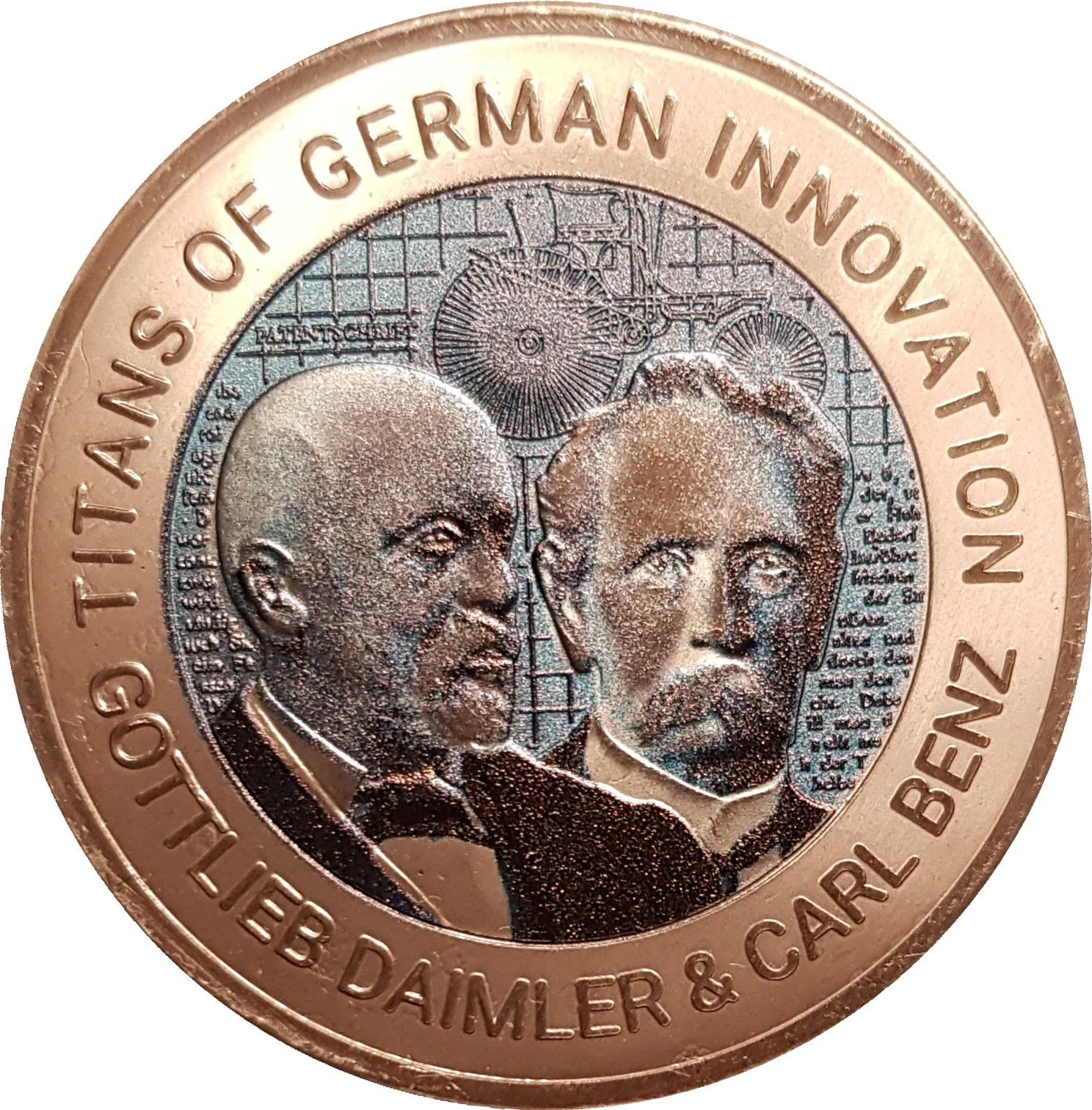 Portrait of automotive pioneers Daimler and Benz.