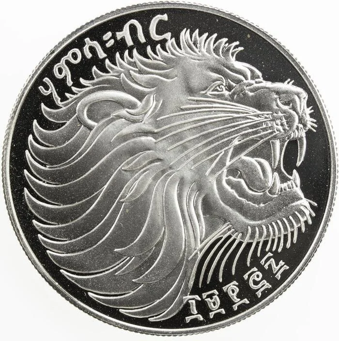 Large lion facing right with "HAMSA BIR" (50 Birr) above in Amharic.