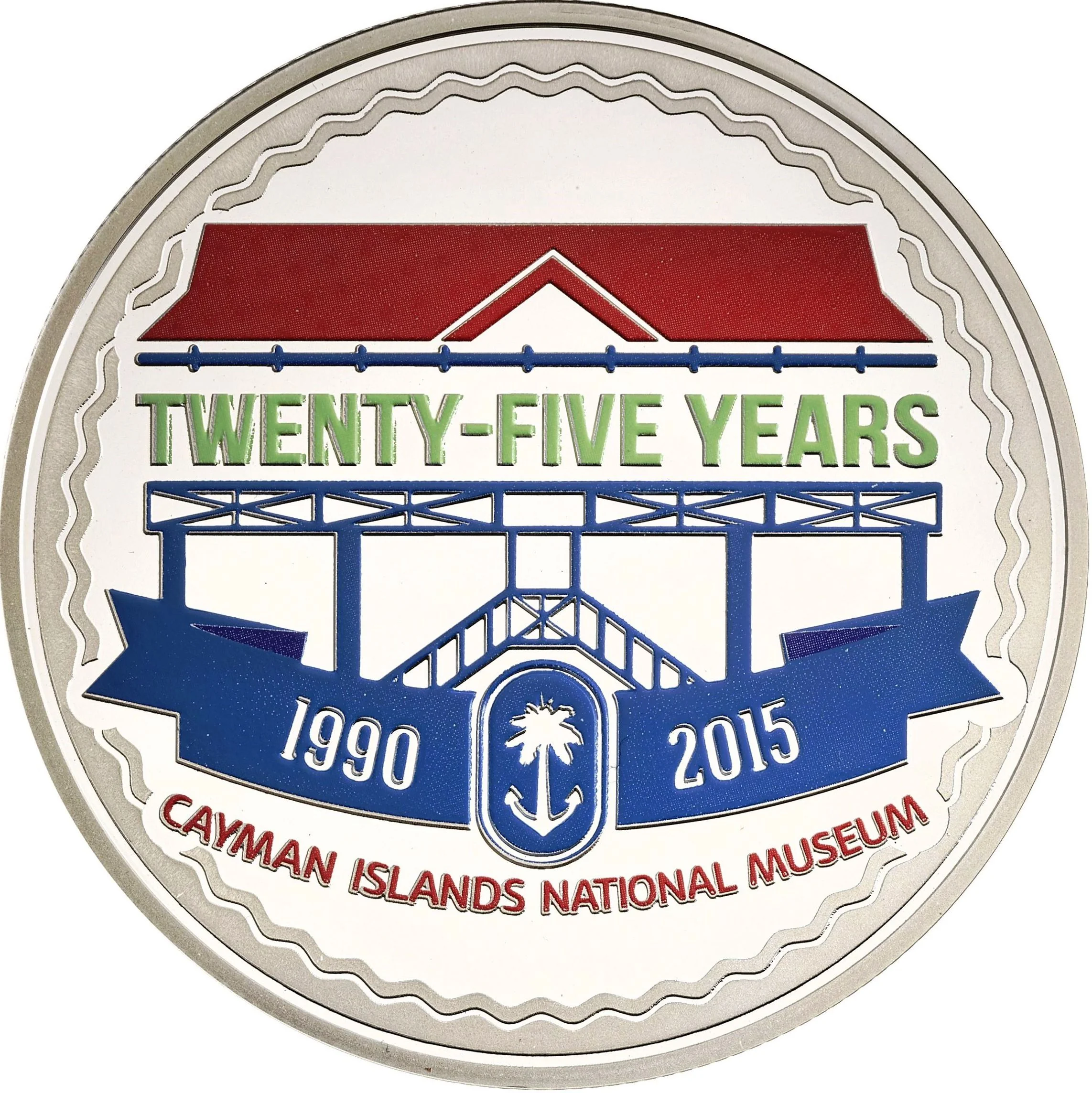 The Cayman Islands National Museum's 25th Anniversary logo in colour, depicting the museum building.