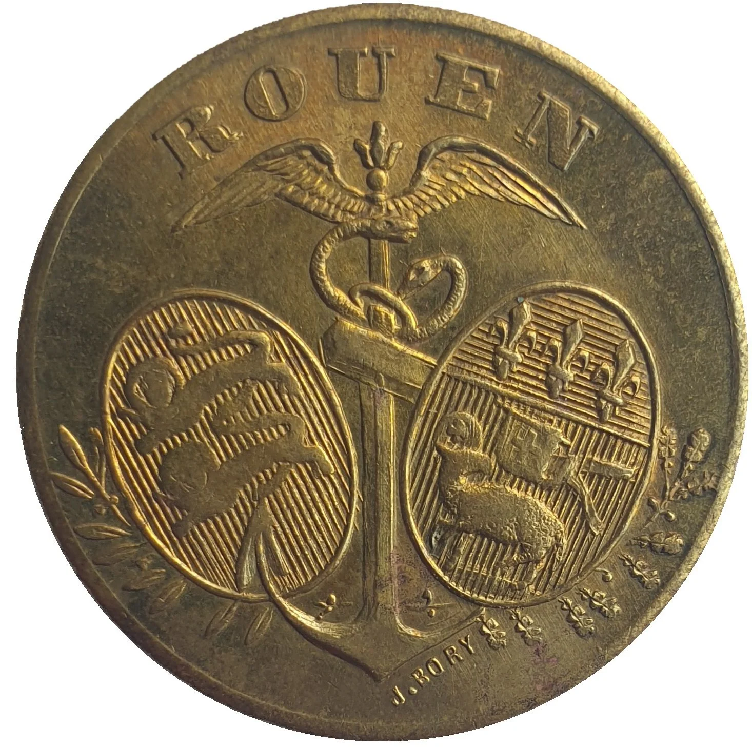 Rouen's name above its coat of arms and the Seine-Maritime department's, flanking a winged anchor.